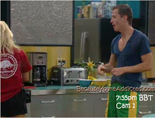 Ragan comes in from working out and tells Britney (in a manly man voice)...